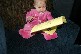 (I intended to just get one good picture of Cameron with her sign, but she kept eating the sign, so I finally decided a picture progression was in order.)