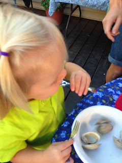 Sydney tried clams, she wasn't overly impressed, but at least she tried them!